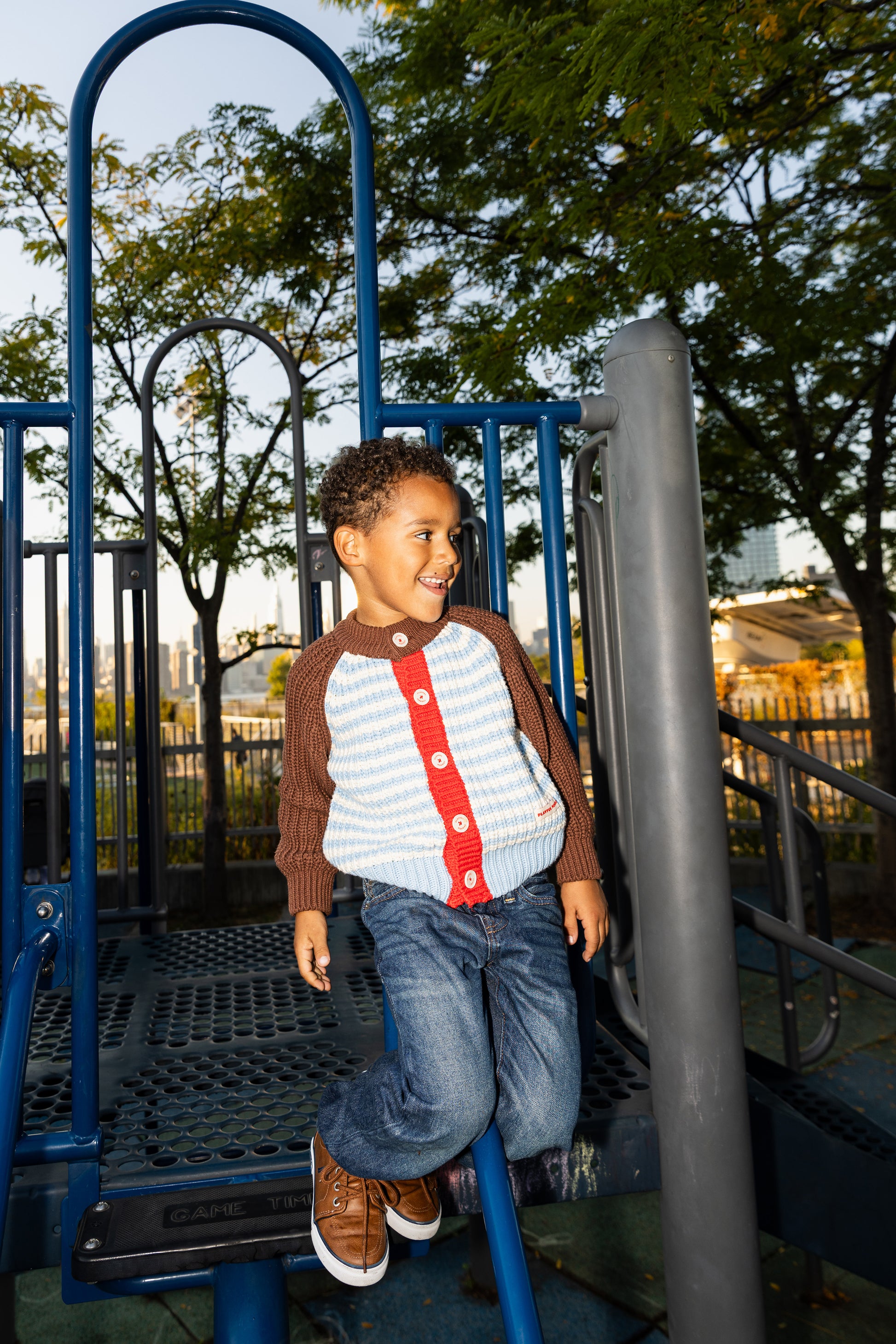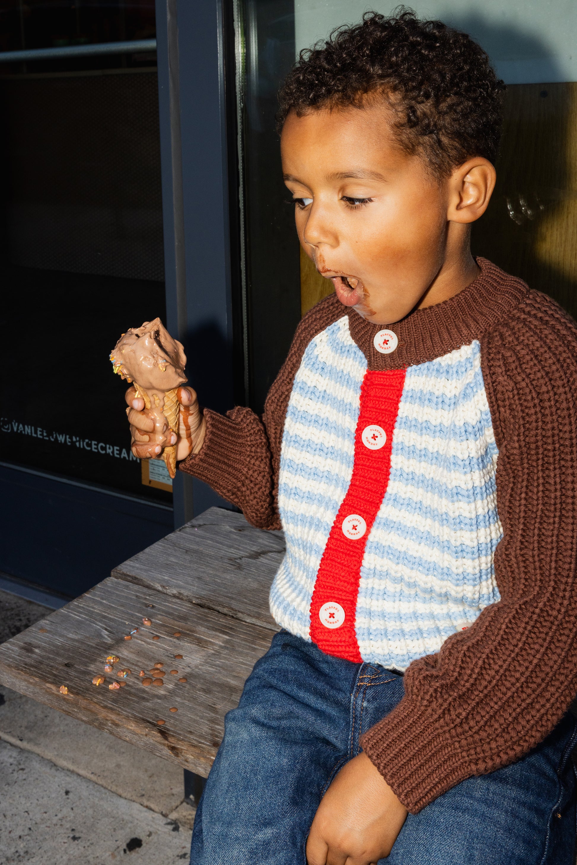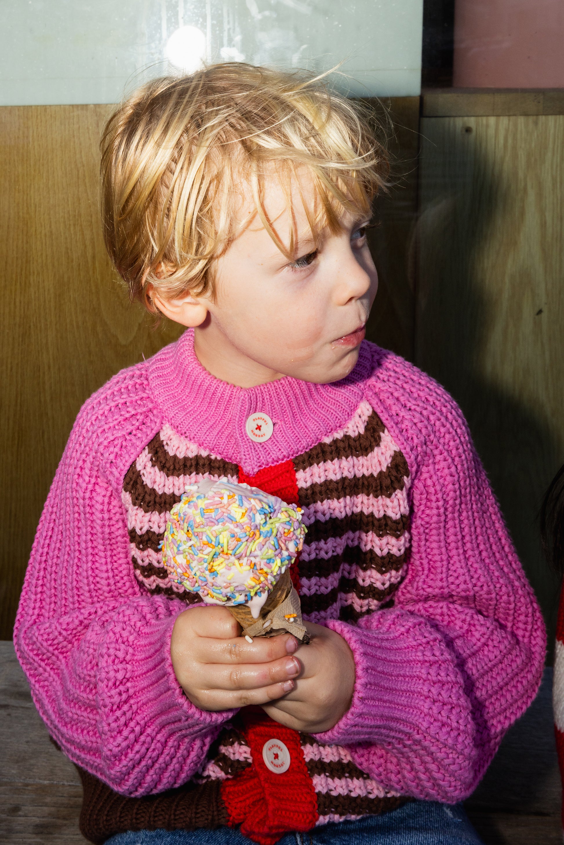 Made of 100% cotton yarn, this colorful, chunky-knit cardigan is vintage-inspired and full of nostalgic charm, just like something Grandma would knit for her grandkids. With its retro vibe, cozy texture, and playful mix of colors, it’s a warm and comfy piece that instantly turns into a cute outfit for any day of the week.